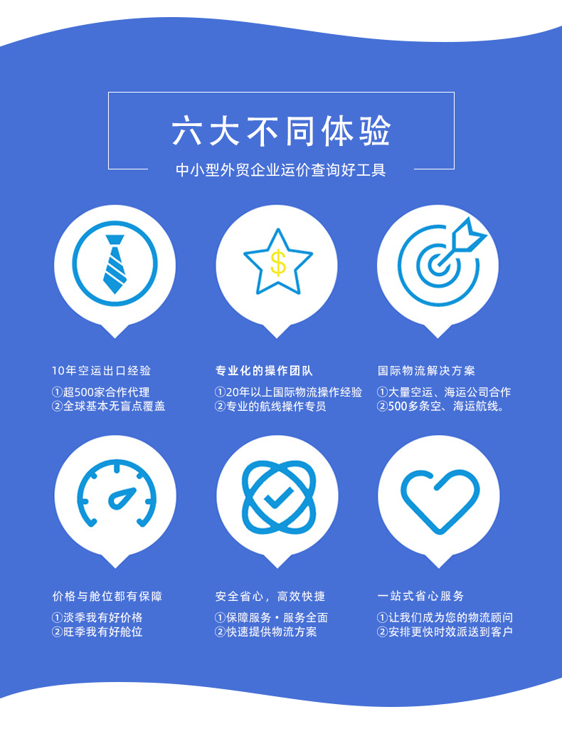 我們密切配合航空公司的發展策略,努力拓展國際市場,現已成為國內外多家知名航空公司的核心銷售代理,建立了良好的合作關系,公司擁有一批超過10年空運經驗的精英人才,熟悉世界各國空運港的操作情況和各類貨物運輸流程,可根據客戶的要求,擬訂最適合您的方案。