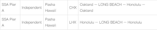 這是這家美國籍船公司近期最新推出的一條全新的美西集裝箱班輪航線,據悉該航線提供每周兩次往返在夏威夷和長灘之間的集裝箱班輪服務。